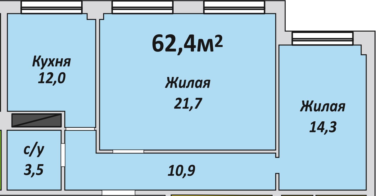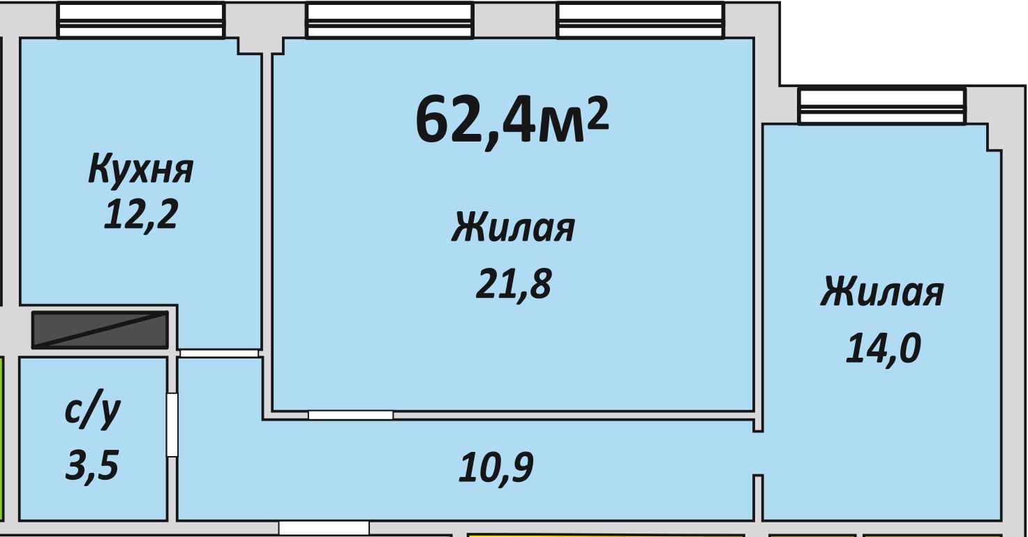 Двухкомнатная , №182 , 62.4 м2