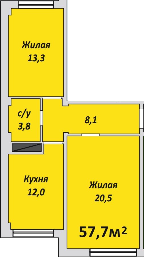 Двухкомнатная , №194 , 57.7 м2