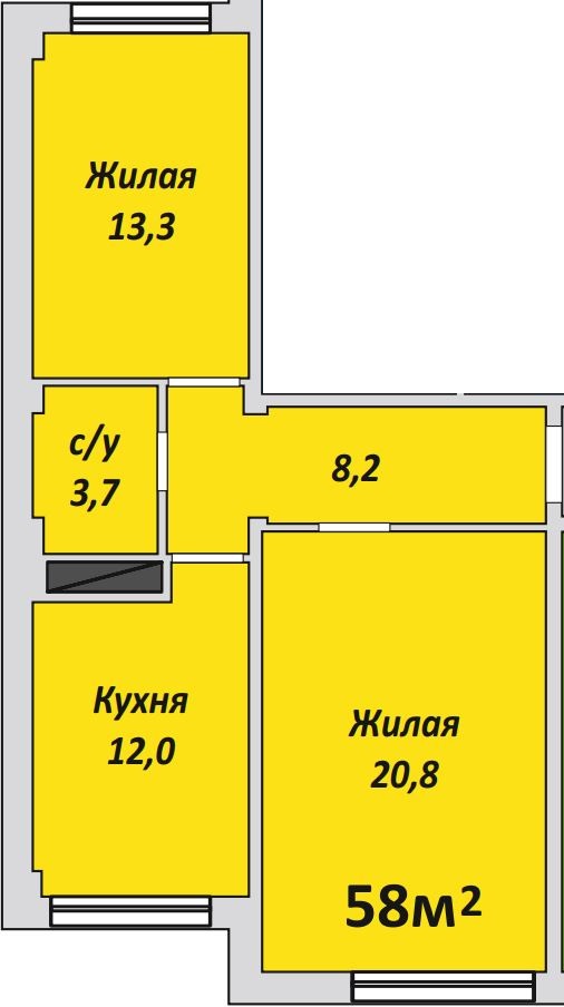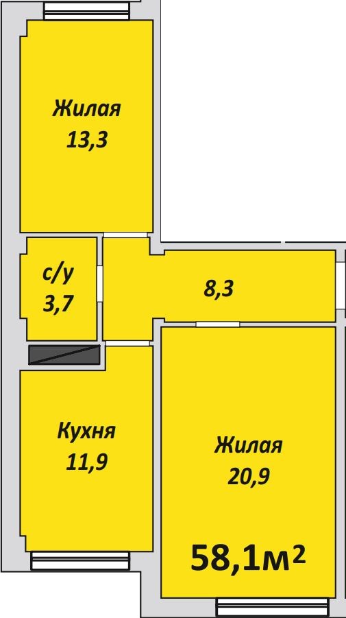 Двухкомнатная , №178 , 58 м2