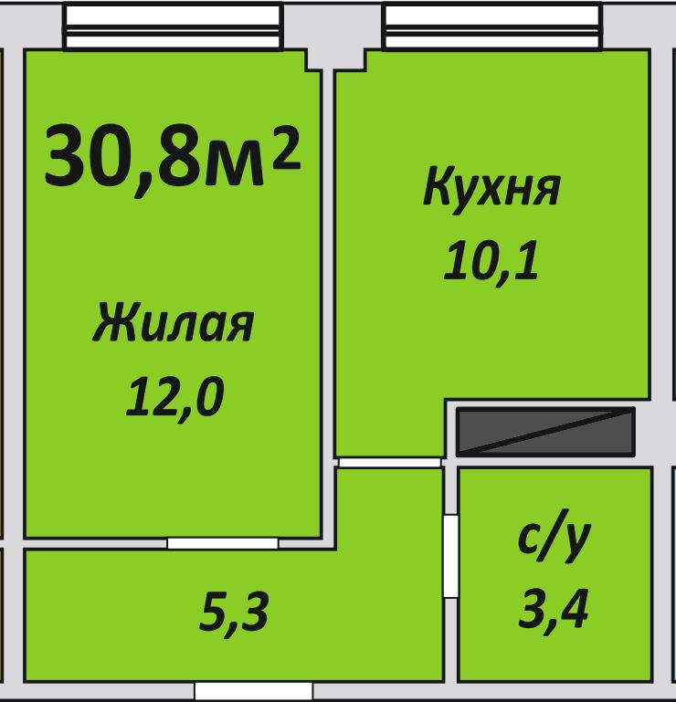 Однокомнатная , №181 , 30.8 м2