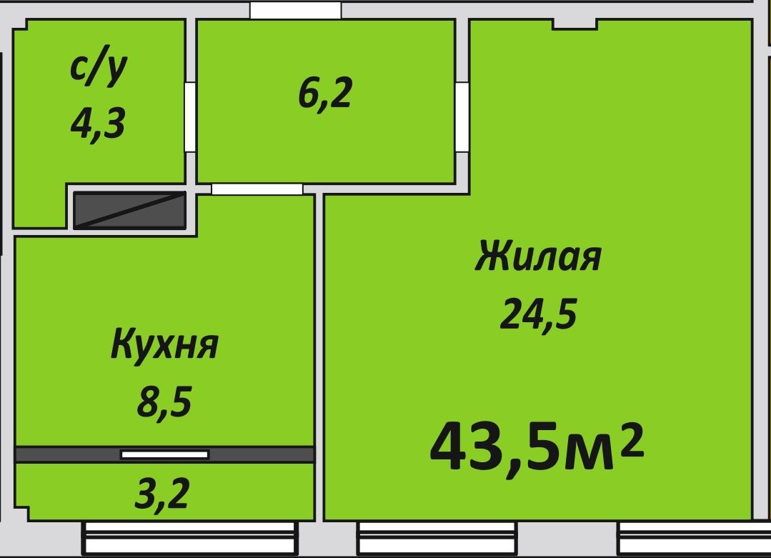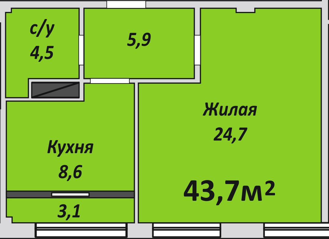 Однокомнатная , №232 , 43.7 м2