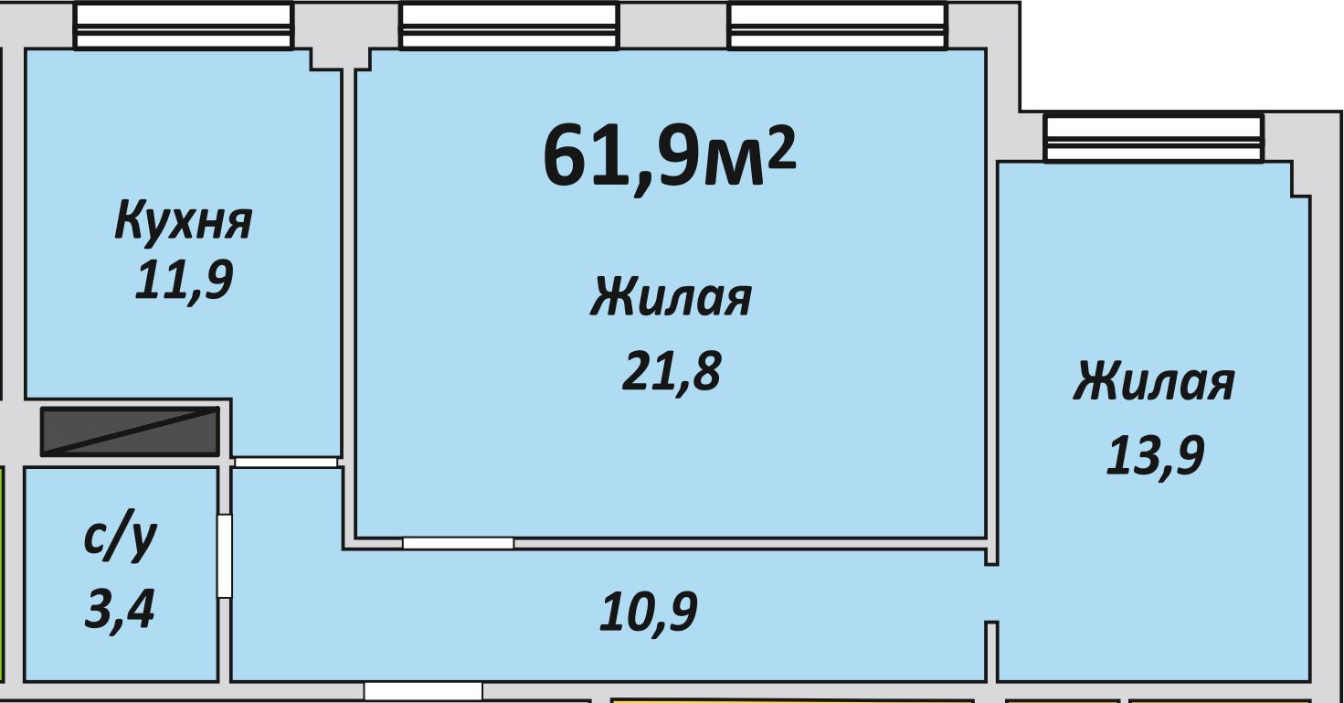 Двухкомнатная , №175 , 61.9 м2
