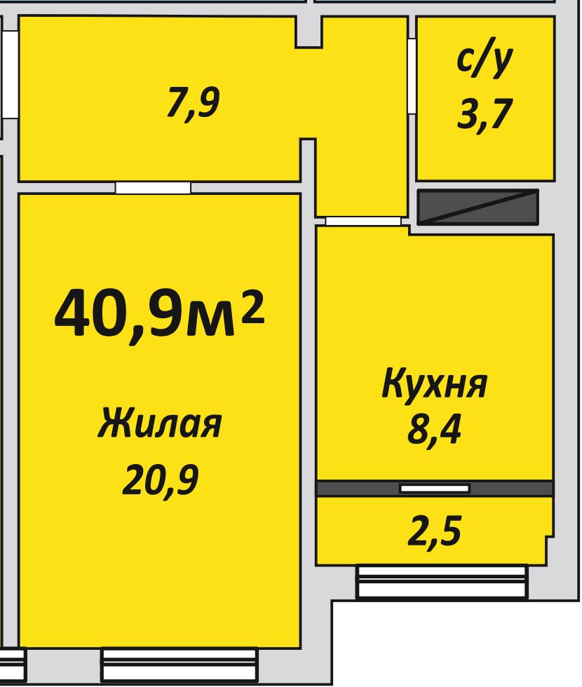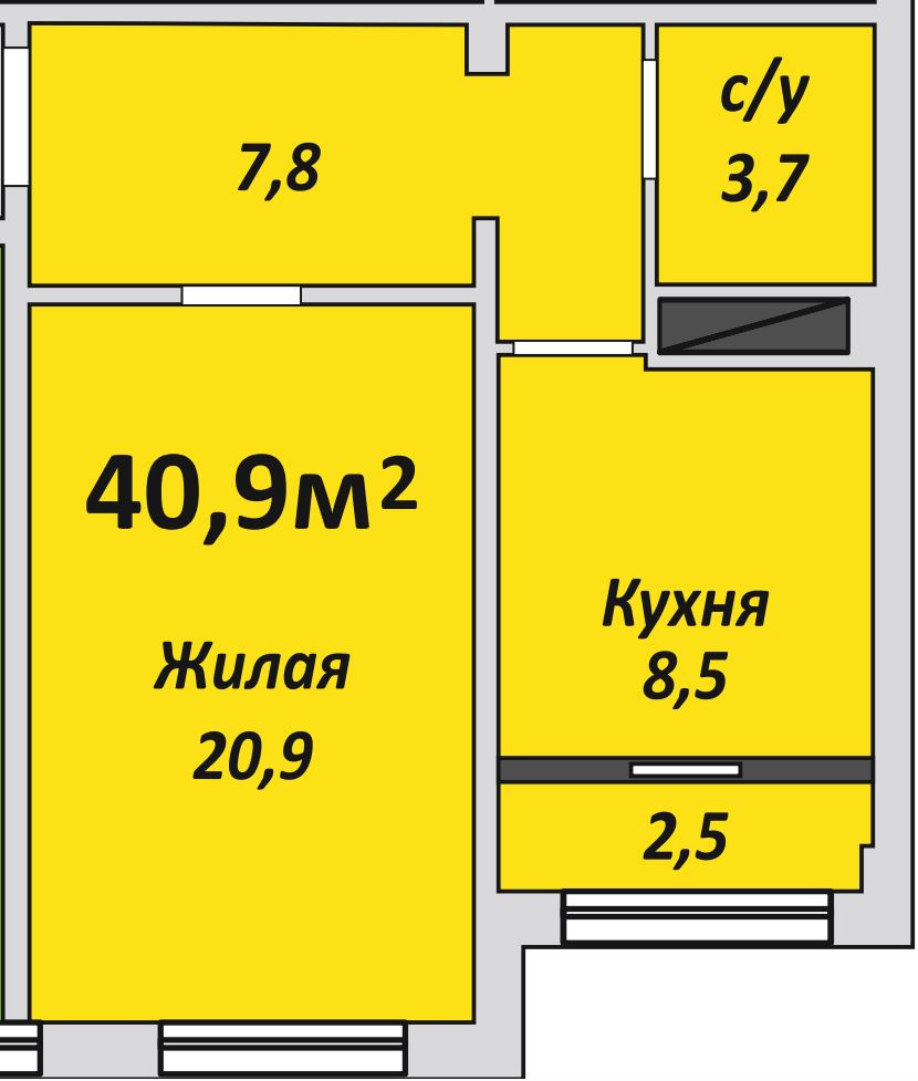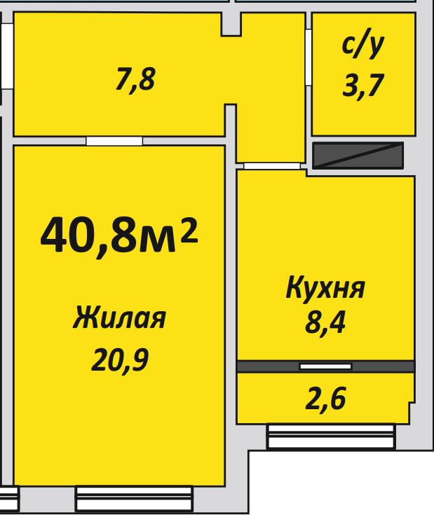 Однокомнатная , №231 , 40.8 м2
