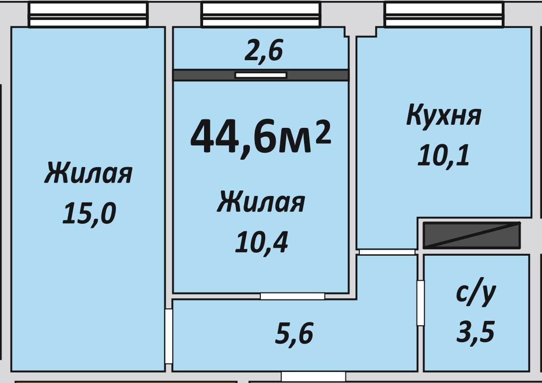Двухкомнатная , №203 , 44.6 м2