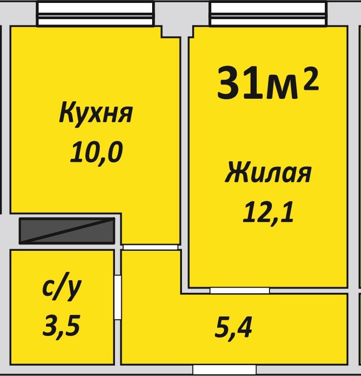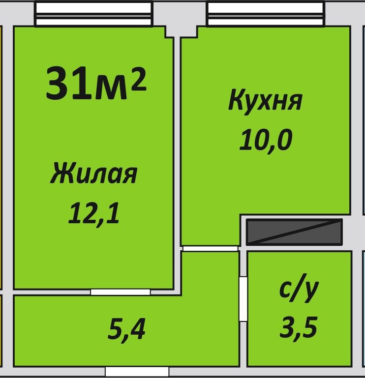 Однокомнатная , №189 , 31 м2
