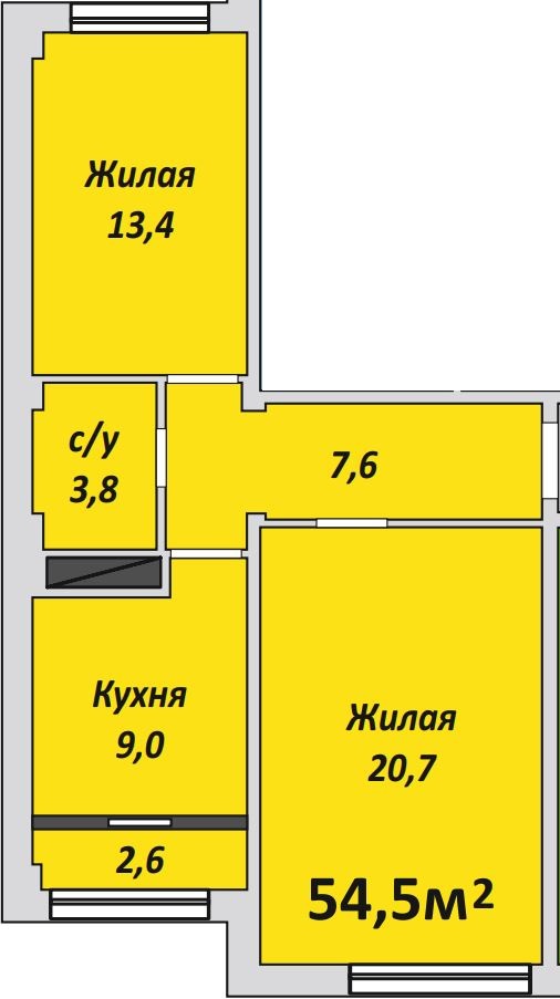 Двухкомнатная , №218 , 54.5 м2