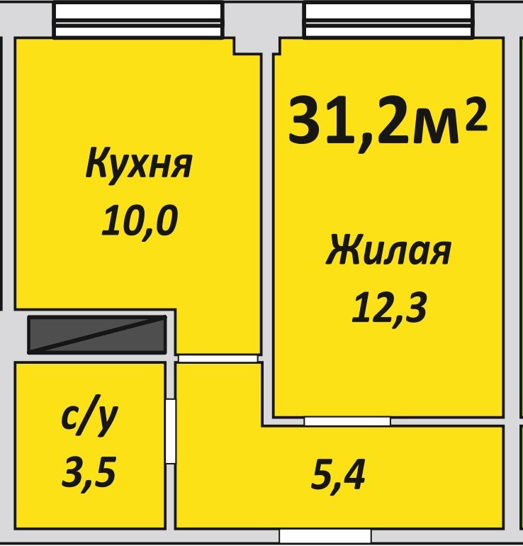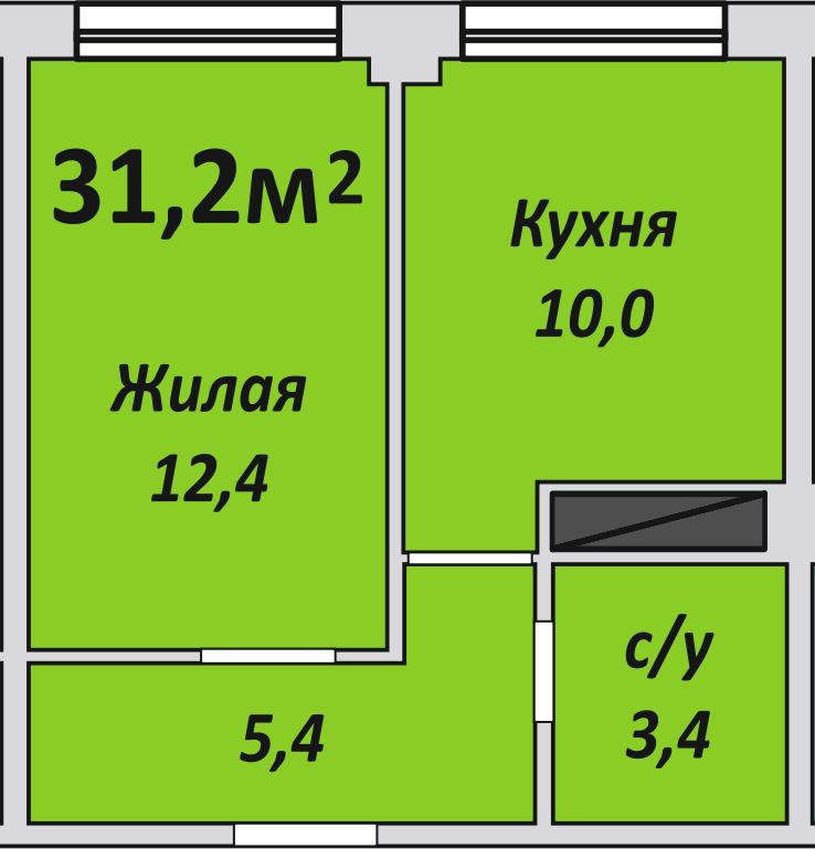 Однокомнатная , №188 , 31.2 м2