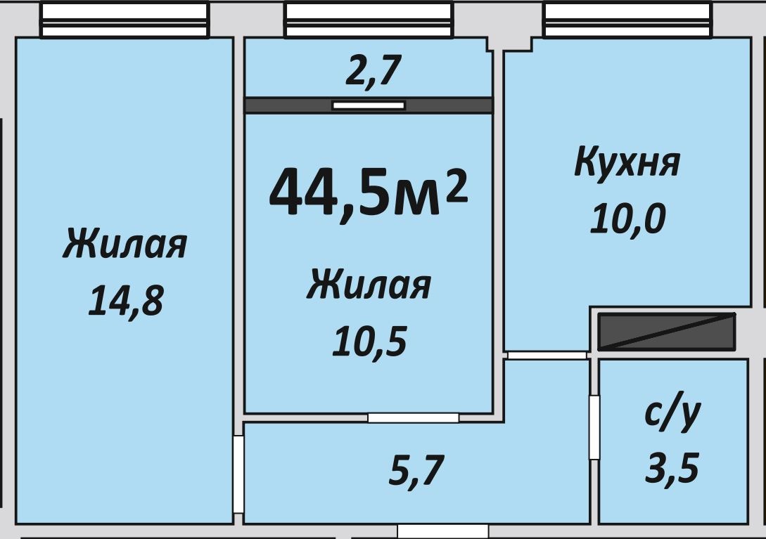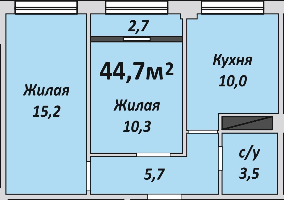 Двухкомнатная , №235 , 44.7 м2