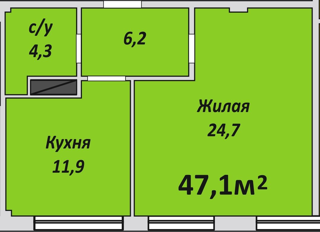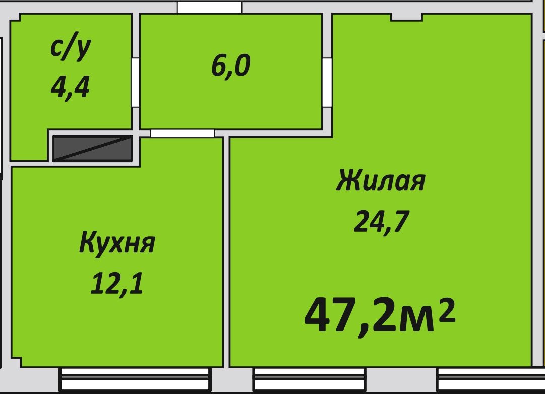 Однокомнатная , №184 , 47.1 м2