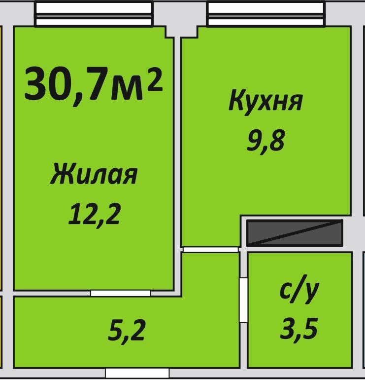 Однокомнатная , №174 , 30.7 м2