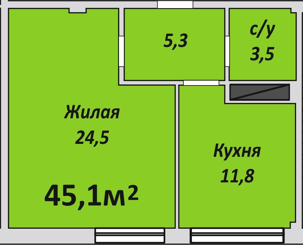 Однокомнатная , №177 , 45.1 м2