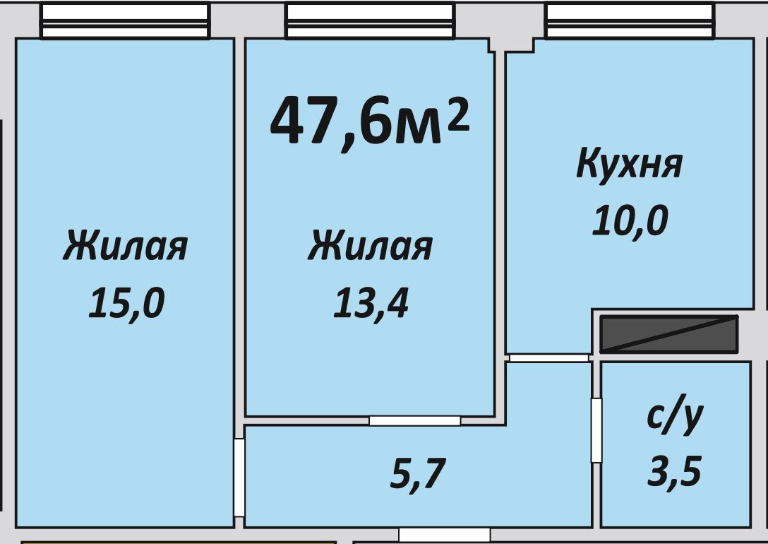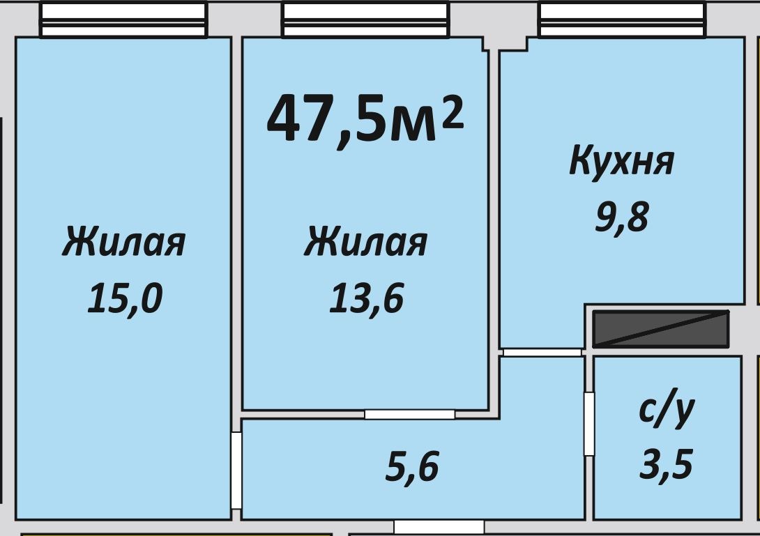 Двухкомнатная , №172 , 47.5 м2