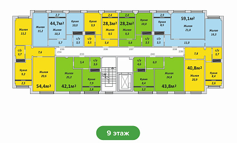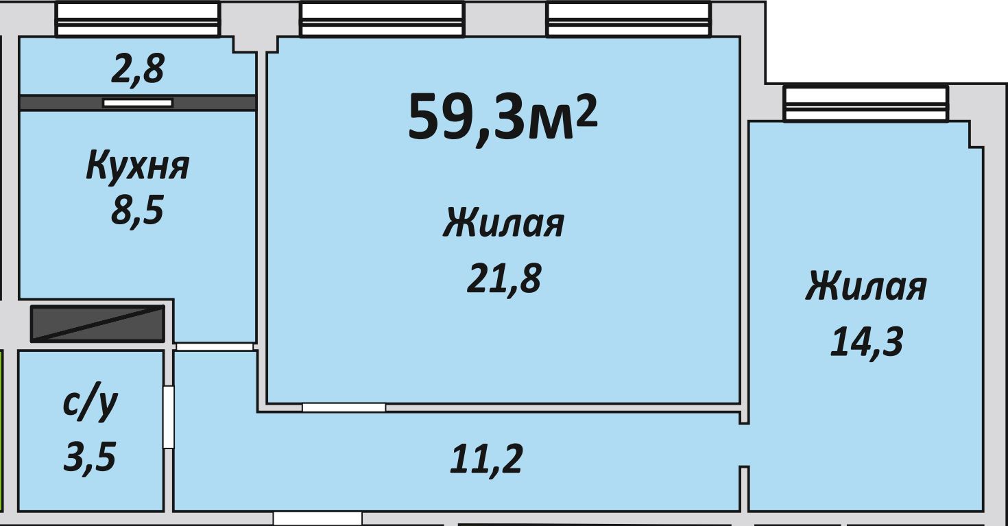 Двухкомнатная , №230 , 59.3 м2