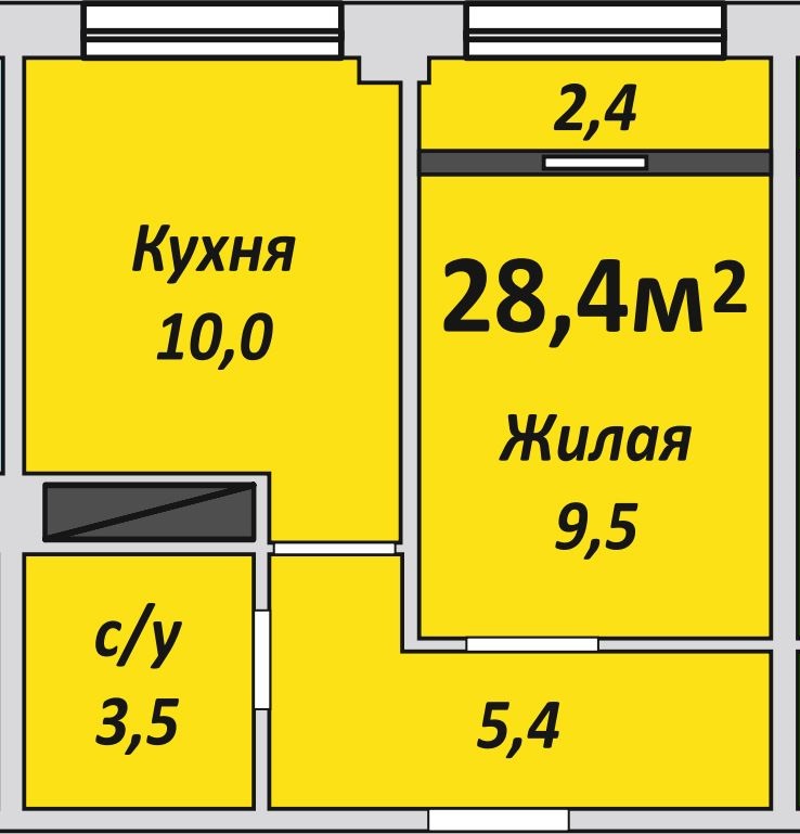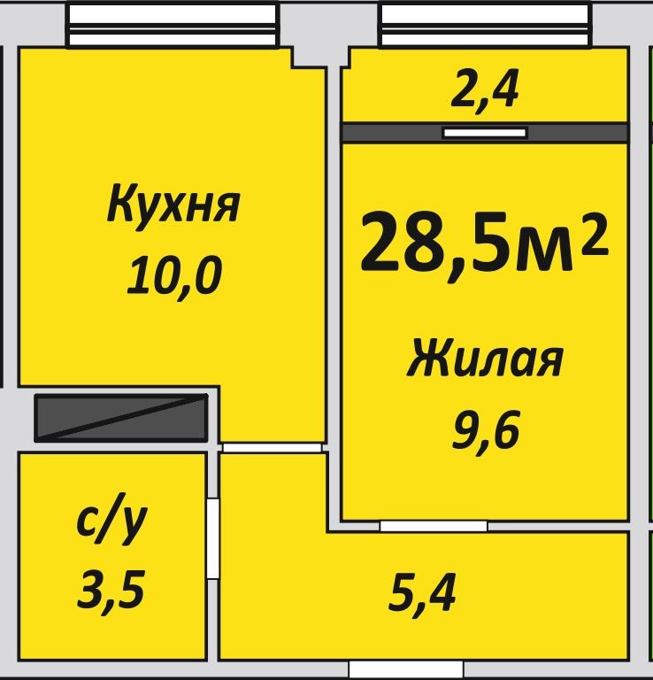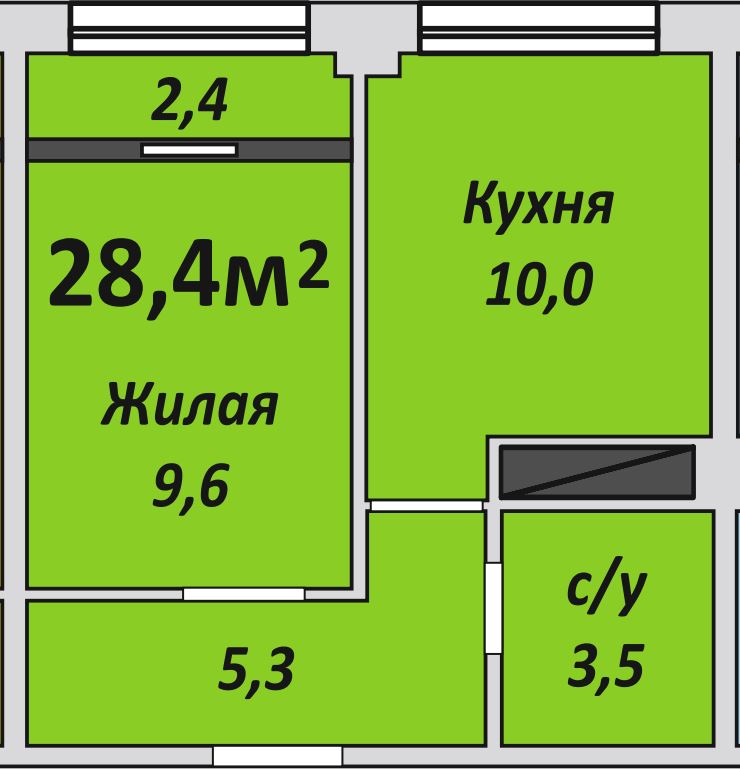 Однокомнатная , №221 , 28.4 м2
