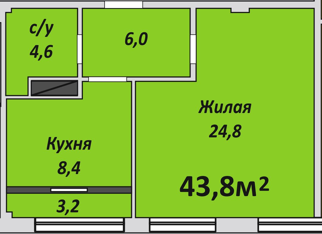 Однокомнатная , №240 , 43.8 м2