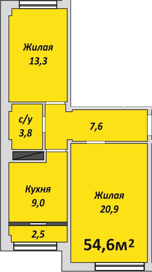 Двухкомнатная , №202 , 54.6 м2