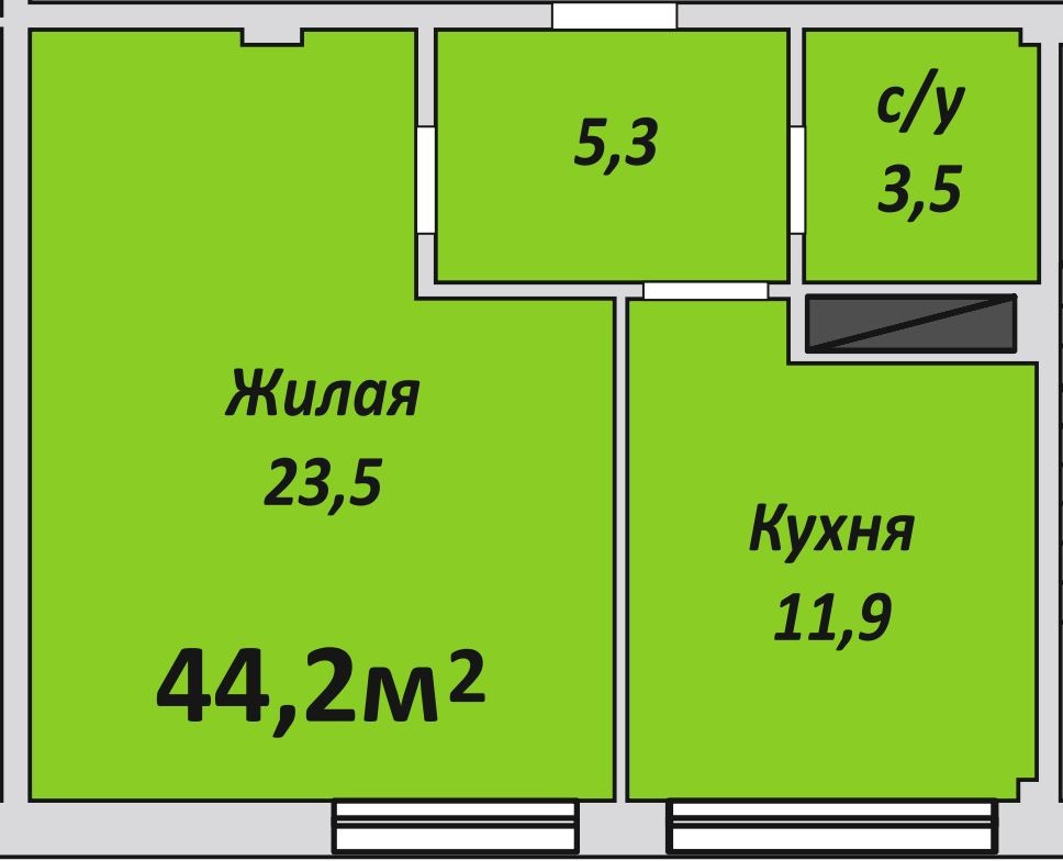 Однокомнатная , №170 , 44.2 м2