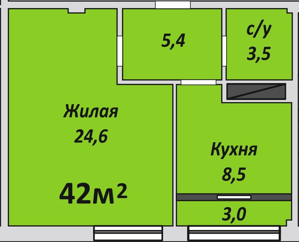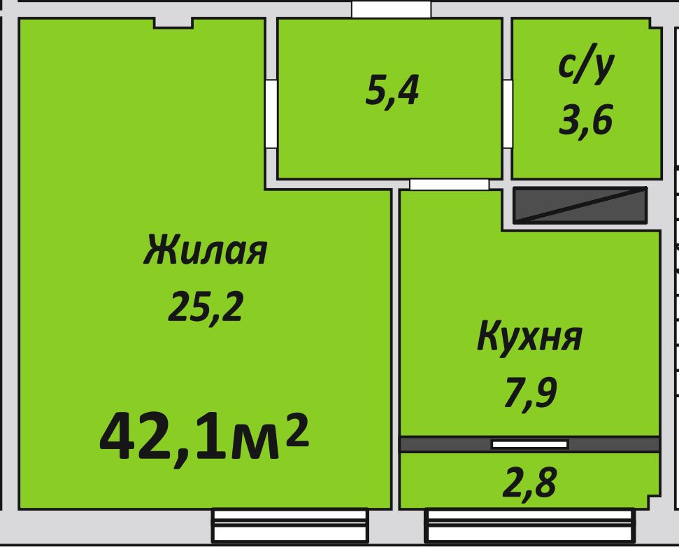 Однокомнатная , №233 , 42.1 м2