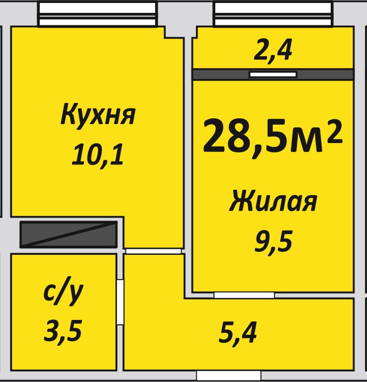 Однокомнатная , №228 , 28.5 м2