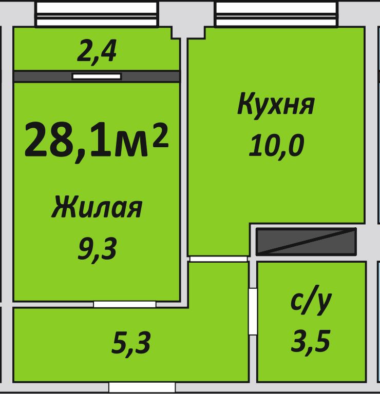 Однокомнатная , №237 , 28.2 м2