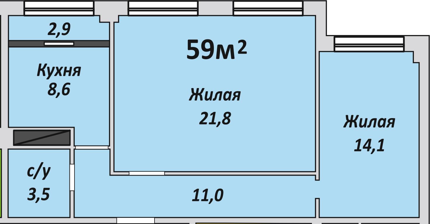 Двухкомнатная , №206 , 59 м2