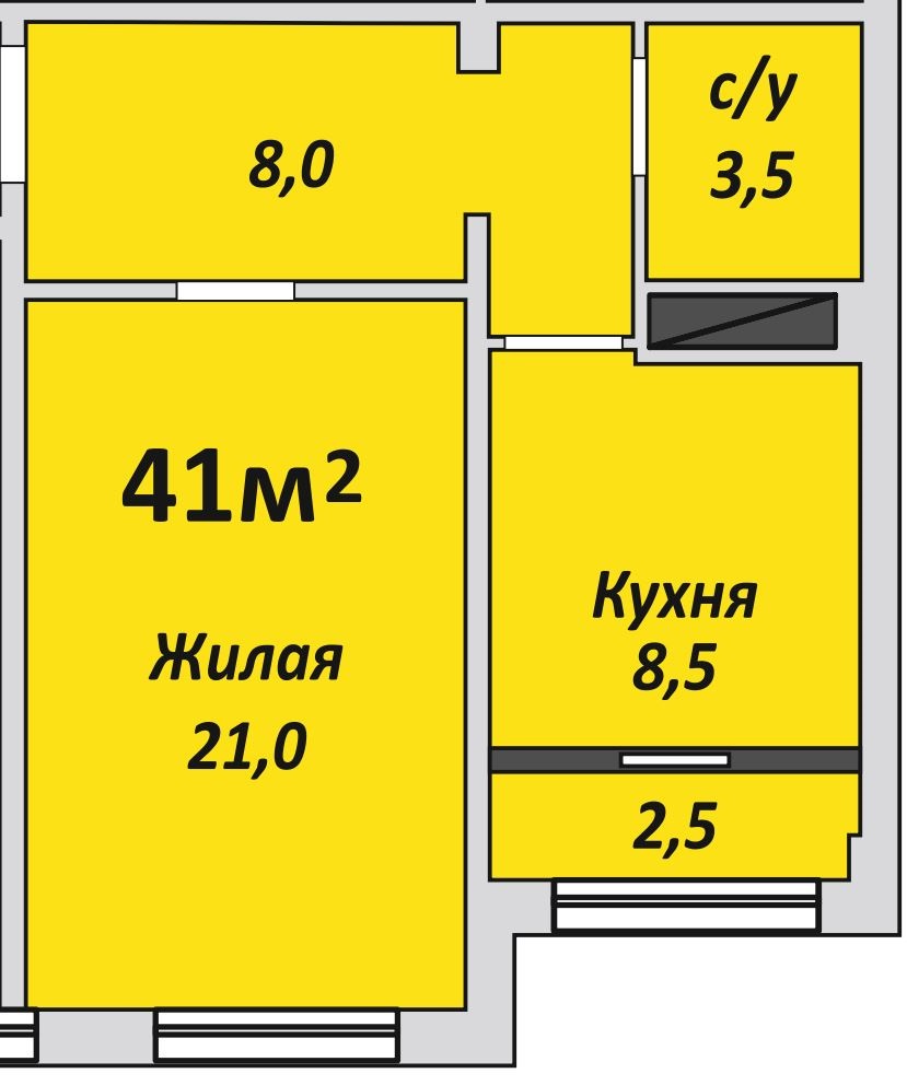 Однокомнатная , №207 , 41 м2
