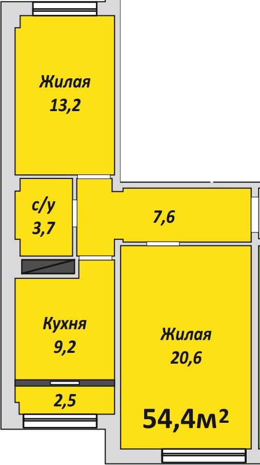 Двухкомнатная , №234 , 54.4 м2