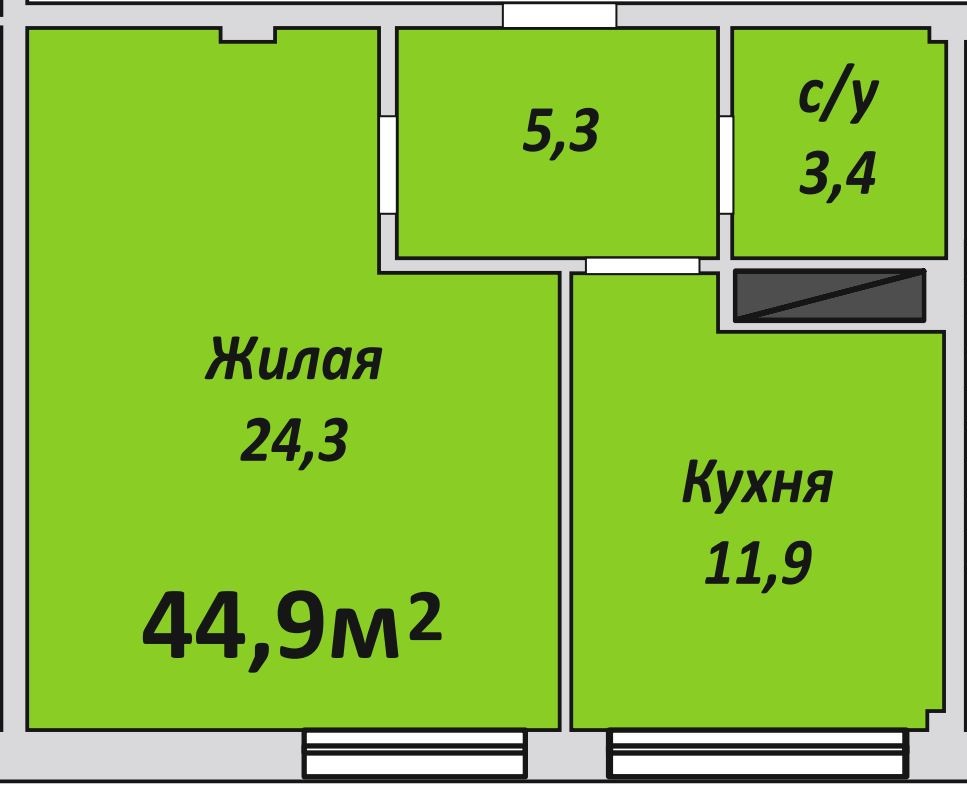 Однокомнатная , №185 , 44.9 м2