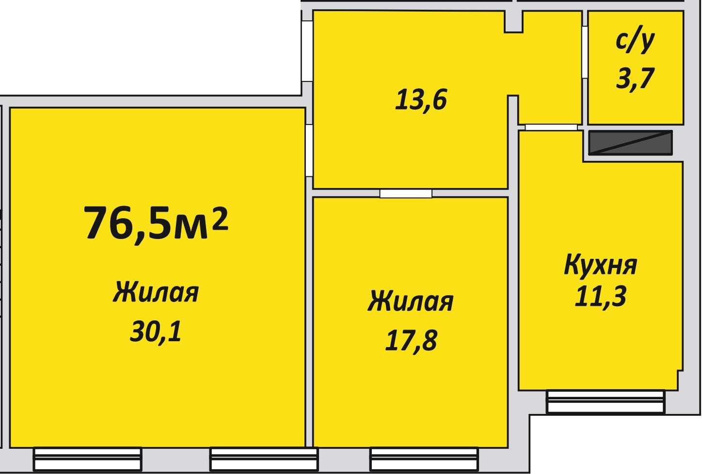 Двухкомнатная , №176 , 76.5 м2