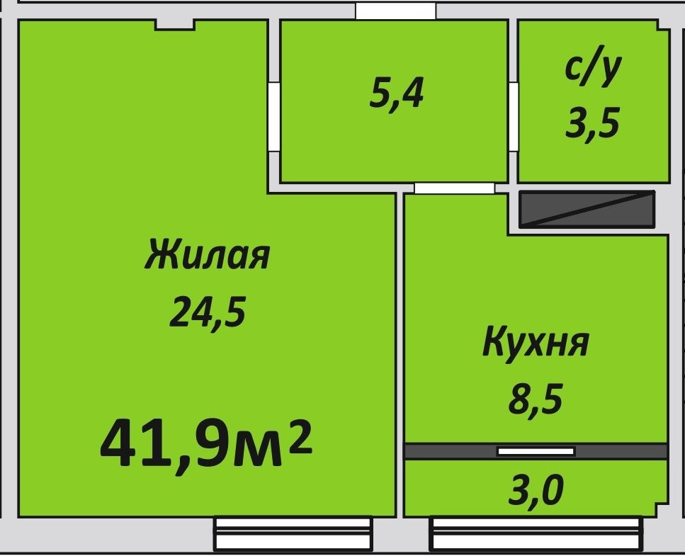 Однокомнатная , №225 , 41.9 м2