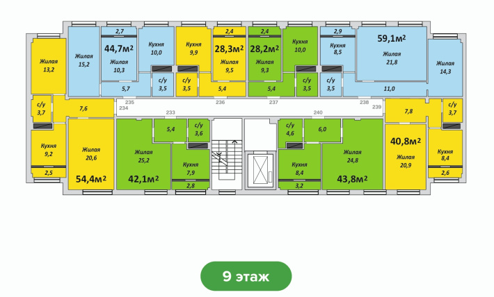 Двухкомнатная , №238 , 59.1 м2